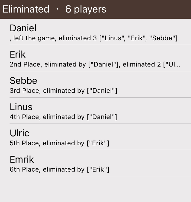 Första rundan var en ren promenadseger för Linus som totaldominerade (nåja) och vi gratulerar The Kid till sin första seger. Stort! Tvåa kom Simon. Hans största framgång hittills, eller?